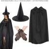 120 cm Siyah Yakalı Cadı Pelerini Cadı Şapkası ve 1 Çift Siyah Kısa File Tüm Eldiven Seti 3 Parça