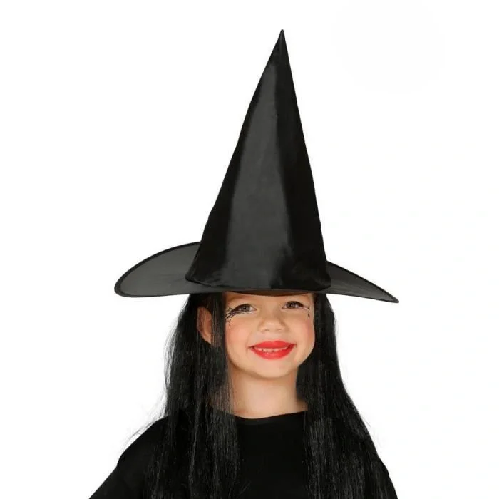 Çocuk Boy Siyah Cadı Şapkası ve Uzun Siyah Cadı Peruğu