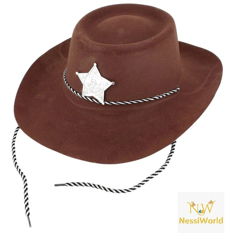 Çocuk Kovboy Şapkası Plastik Üzeri Flok Kaplama Koyu Kahverengi