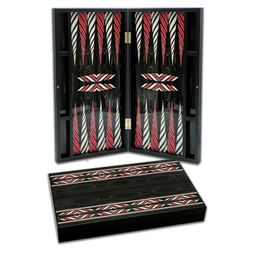 Elegance Glossy Black Pearl Tavla, parlak siyah yüzeyi ve detaylarıyla klasik tavla keyfini lüks bir deneyime dönüştürür.