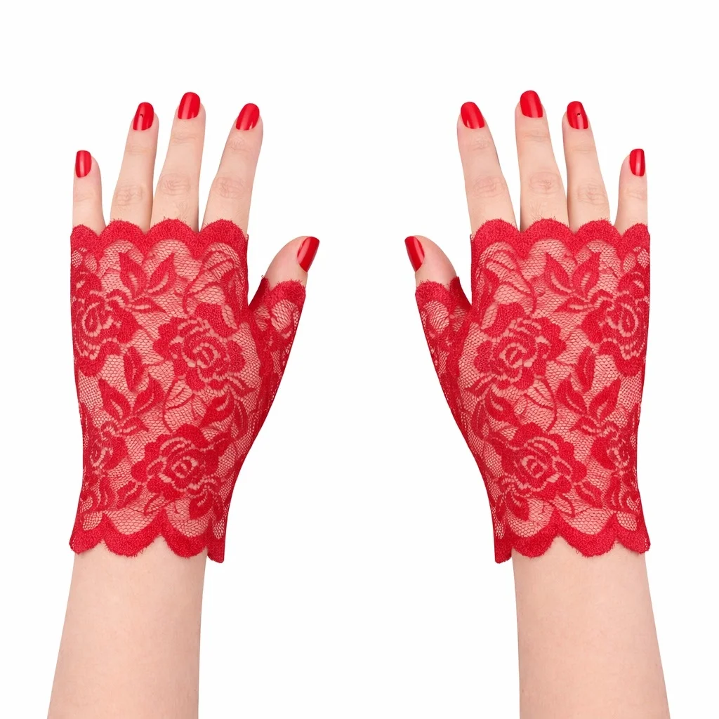 Kırmızı Dantel Parmaksız Kısa Eldiven