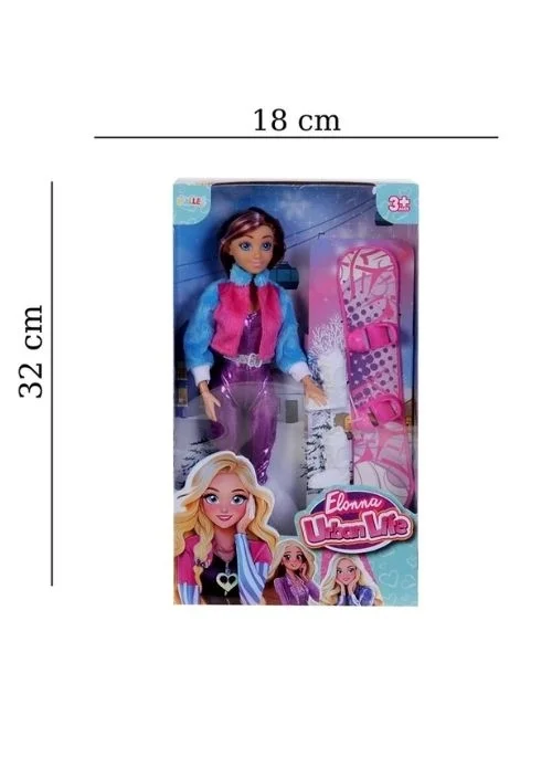 Set içerisinde sevimli bir bebek figürü, kayak ve kıyafetler bulunmaktadır.