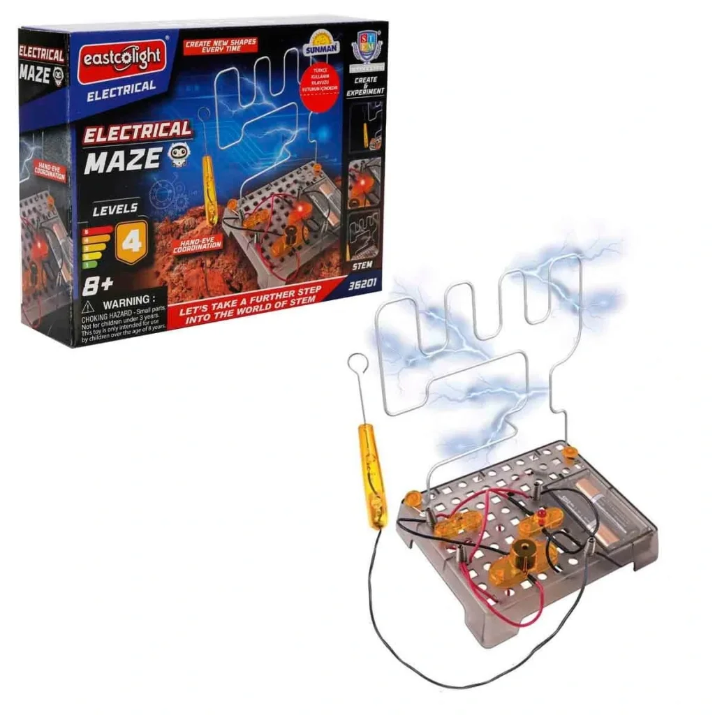 Bu yenilikçi bilim seti ve detaylı talimatlarıyla kendi elektrikli labirentinizi inşa edebilirsiniz.
